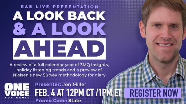 Join RAB and Nielsen for a review of a full calendar year of 3MQ insights, holiday listening trends and an update on Nielsen’s new mSurvey methodology for diary markets.