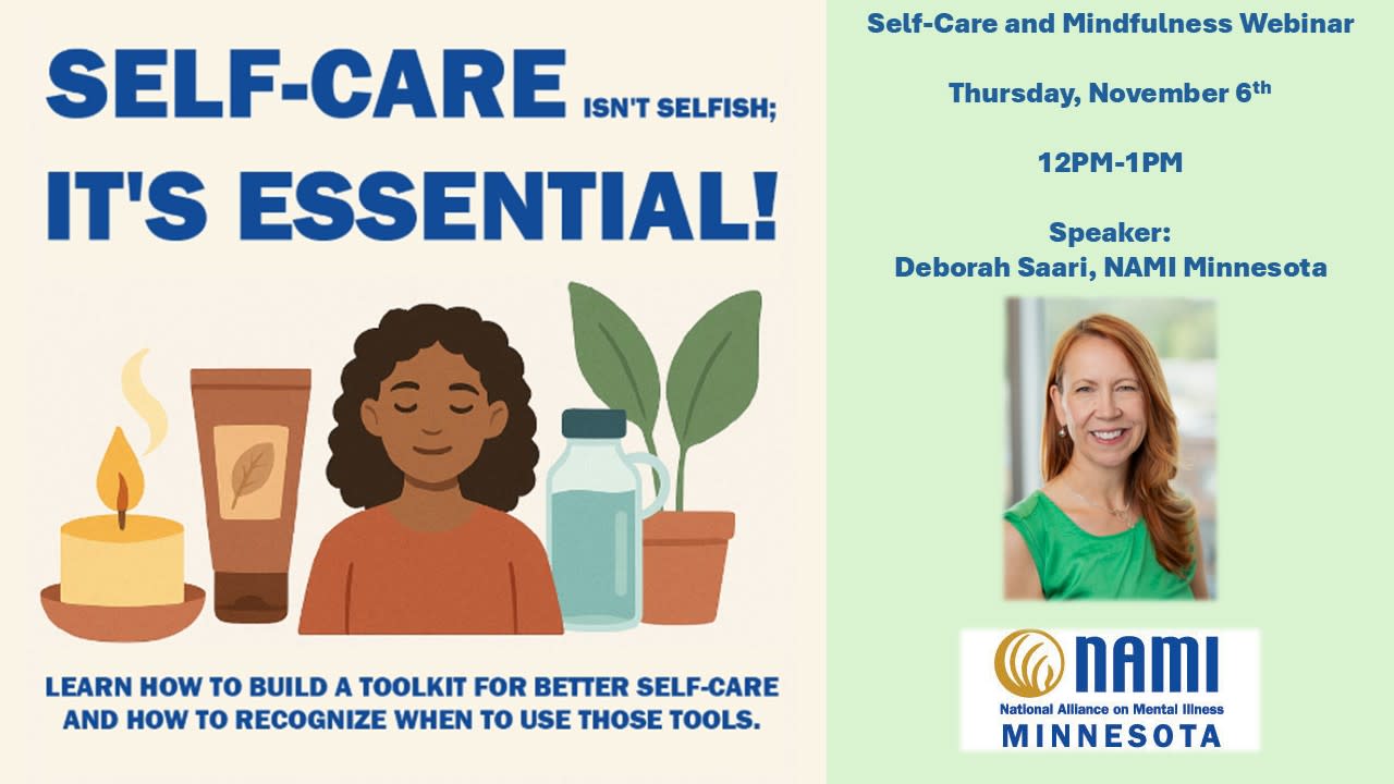 A one-hour session on how to build a toolkit for better self-care and how to recognize when to use those tools. So often, self-care and mindfulness take a back seat in life, but for individuals living with a mental illness or poor mental health, these practices are necessary. Learn new techniques to help improve your self-care routine and receive some new resources to try out.